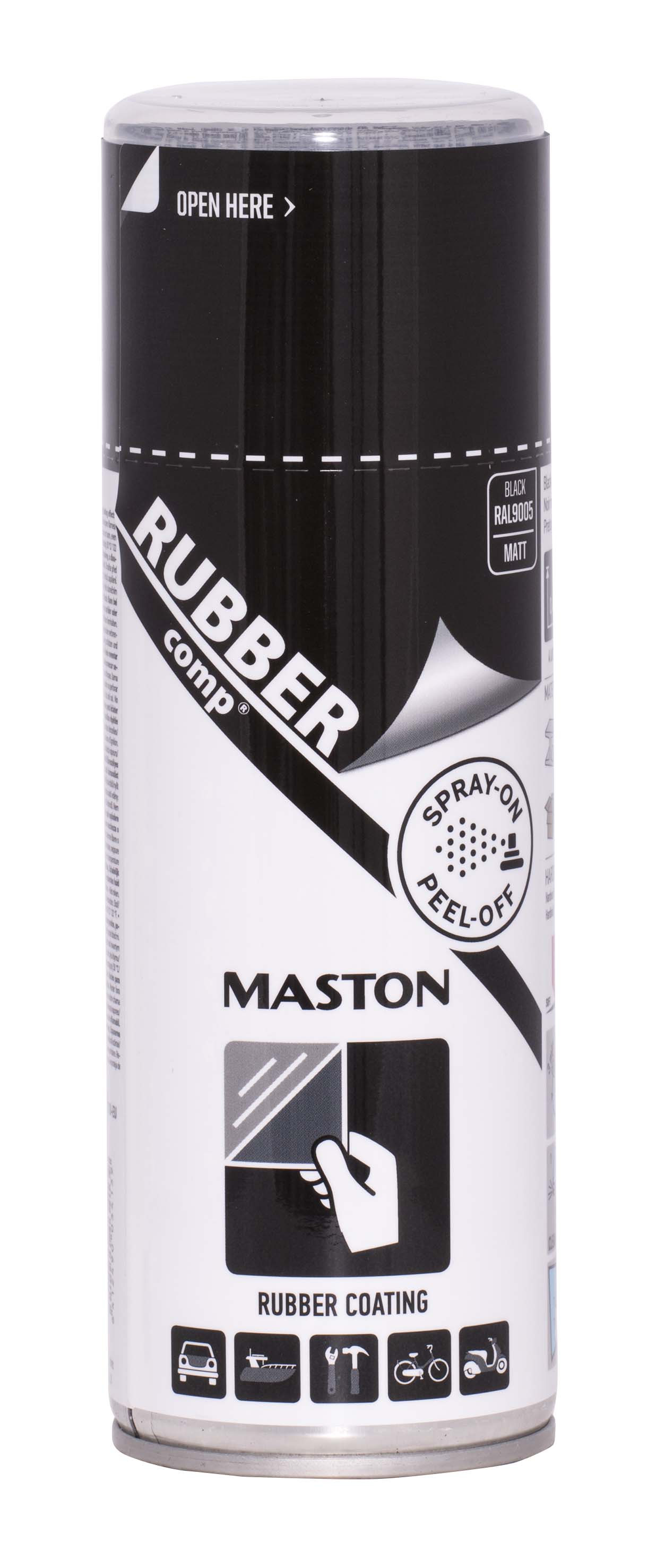 RUBBERcomp synteettinen kumimaalispray on helposti levitettävä, monikäyttöinen, ilmakuivava erikoiskumipinnoite.