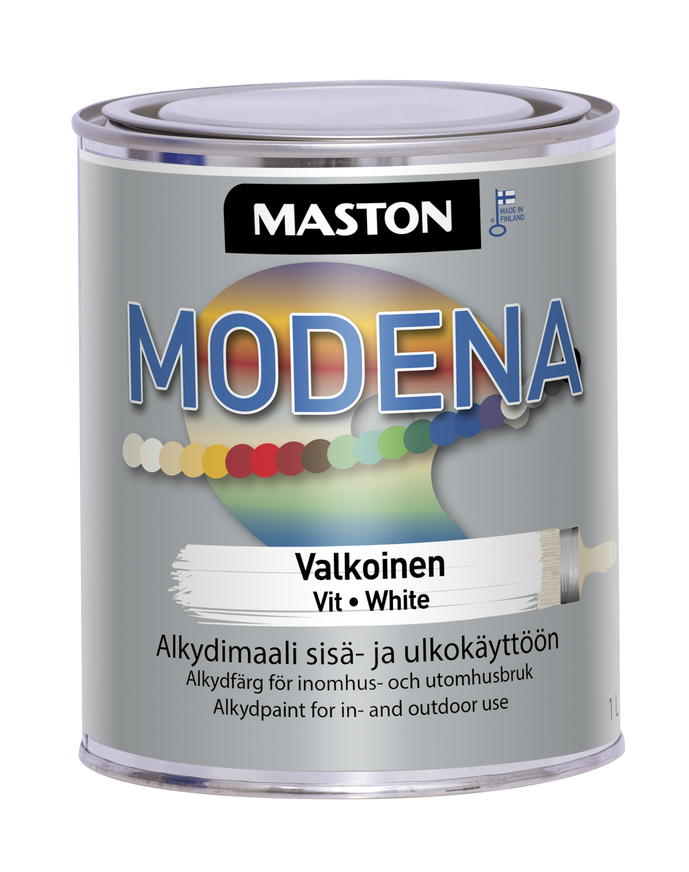 MODENA on erittäin nopeasti ilmakuivuva alkydimaali sisä- ja ulkokäyttöön. Liuotinohenteinen alkydimaali