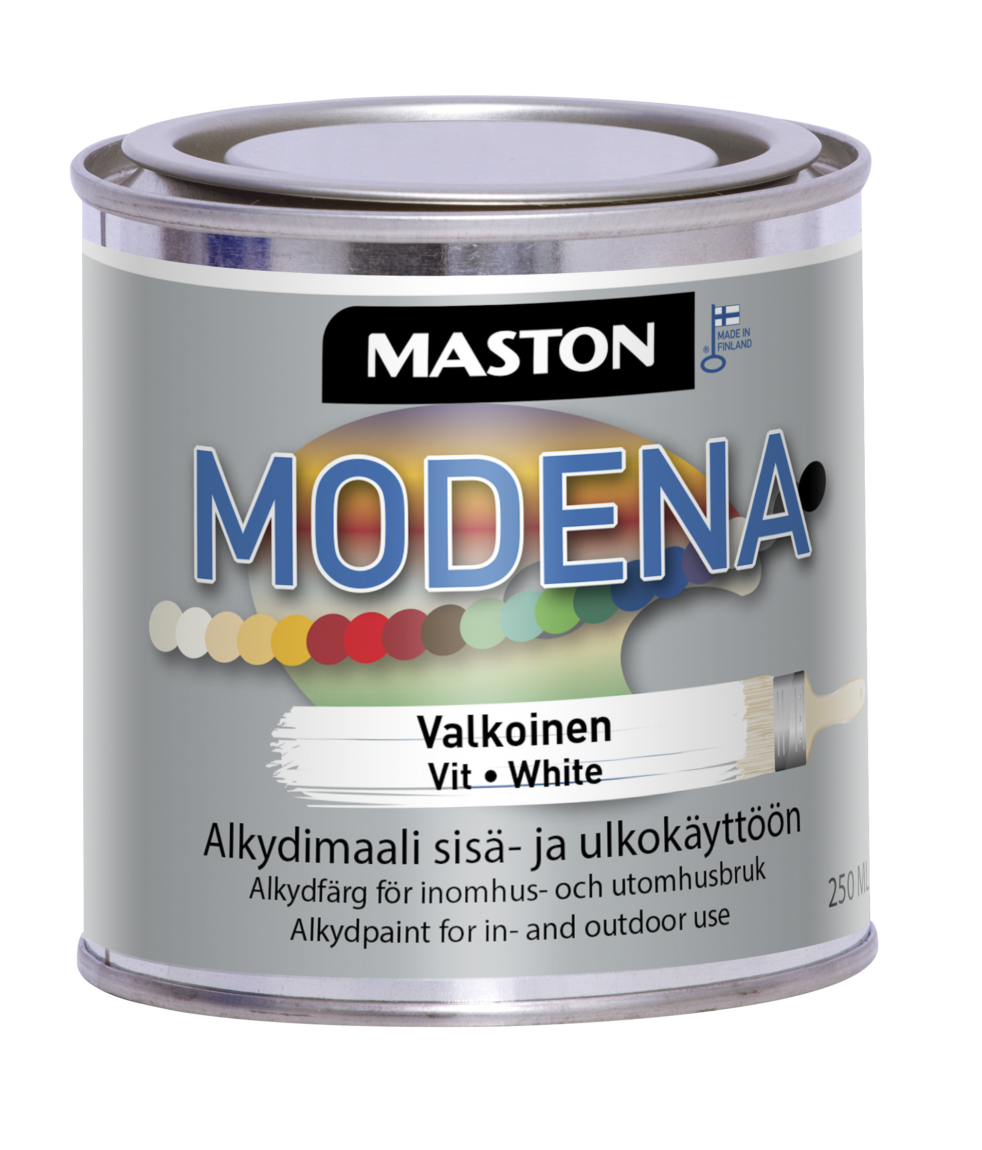 MODENA on erittäin nopeasti ilmakuivuva alkydimaali sisä- ja ulkokäyttöön. Liuotinohenteinen alkydimaali