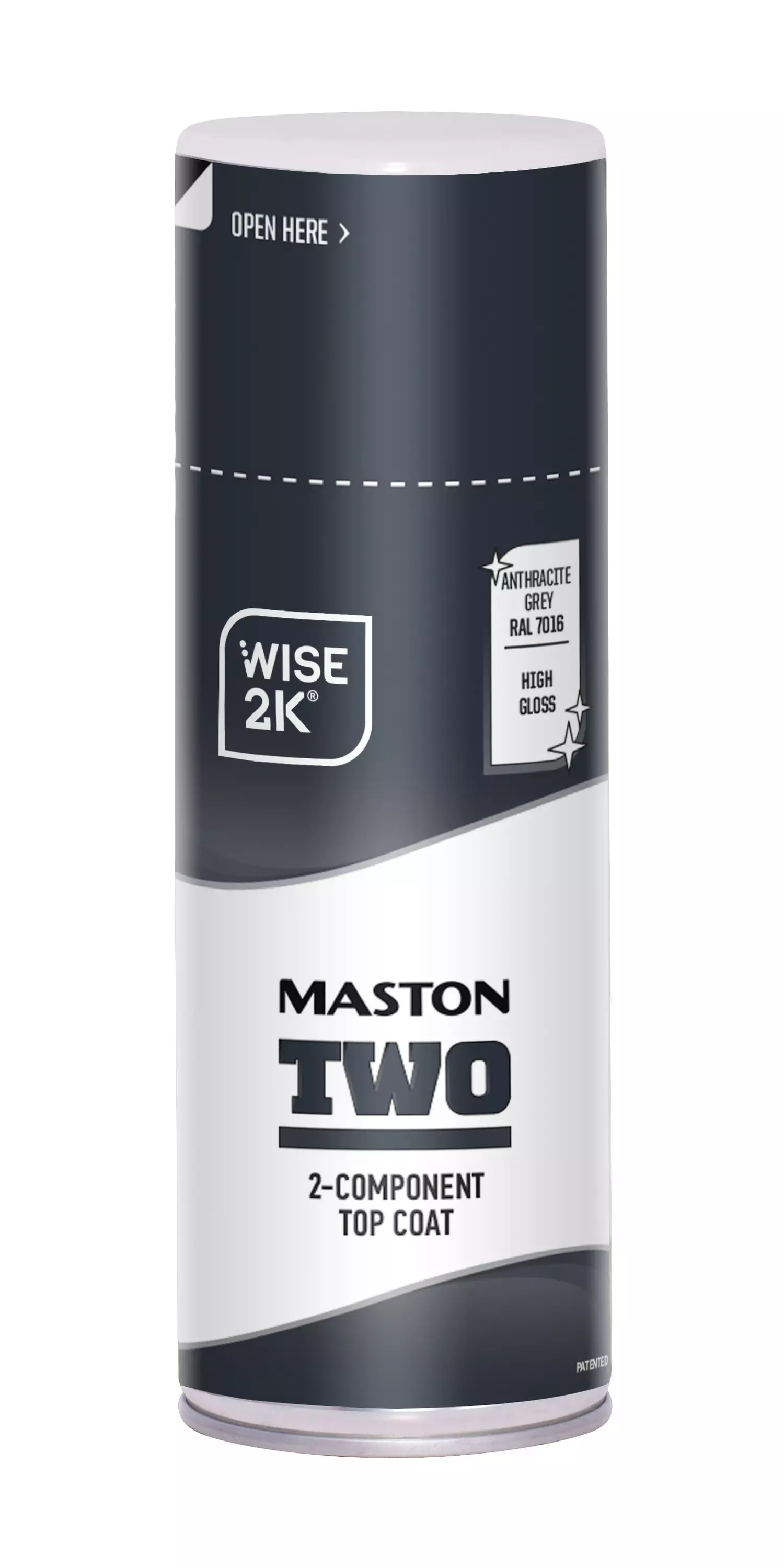 Maston 2K Two spraymaali luo vesi-, ilmatiiviin ja kemikaaleja kestävän maalikerroksen. Perinteisissä 2-komponenttiratkaisuissa maali ja kovete sekoitetaan juuri ennen maalausta, joten maalin käyttöikä vaihtelee minuuteista vuorokauteen. Patentoidun ratkaisun ansiosta Maston 2K Two -maali on aina käyttövalmis, niin monta kertaa kuin on tarpeen ja sen säilyvyysaika on useita vuosia.