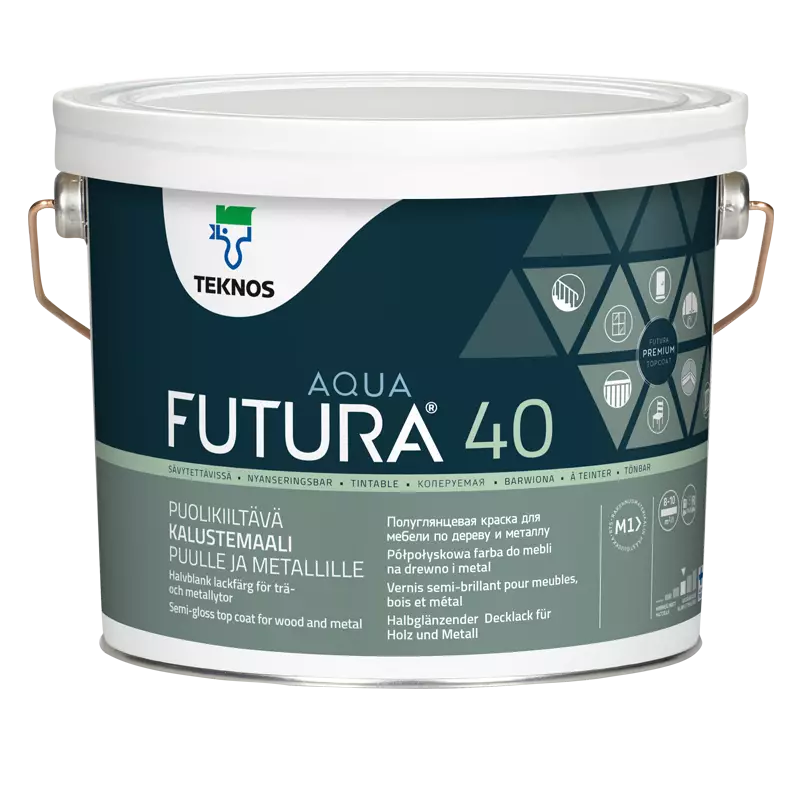 Sisätiloissa FUTURA AQUA 40 soveltuu maalattavaksi pohjamaalatuille ja aiemmin alkydimaaleilla maalatuille puu-, metalli- sekä rakennuslevypinnoille: ovet, ikkunanpuitteet, kaapistot, listat, paneelit ja paneelikatot sekä esim. ilmastointikanavat, porraskaiteet, lämpöpatterit ja putkistot. Ulkona FUTURA AQUA 40 soveltuu pohjamaalattujen ikkunanpuitteiden, ovien ja ulkokalusteiden ym. maalaukseen. Sisätiloissa FUTURA AQUA 40 soveltuu myös FUTURA AQUA PRIMER tartuntapohjamaalilla pohjamaalattujen rappaus- ja tasoitepintojen maalaukseen, esim. ikkunapenkit ja -pielet sekä erityiskohteiden, kuten porraskäytävien, seinäpinnat. Tuote täyttää lelujen turvallisuusstandardin EN 71-3:2013 + A3:2018 vaatimukset alkuaineiden siirtymisen raja-arvoista.