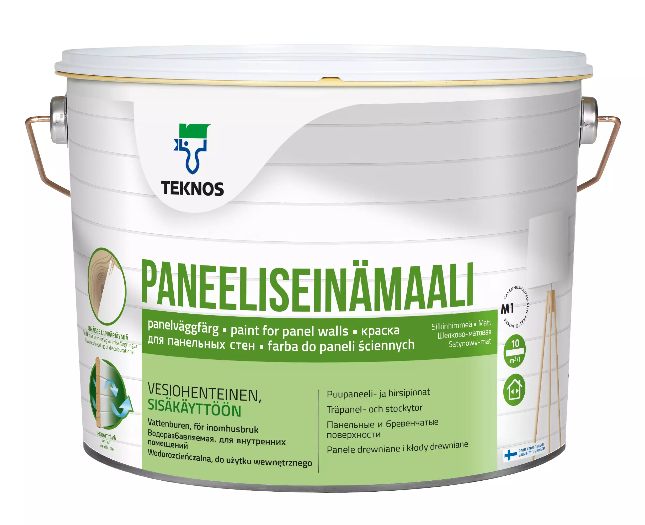 PANEELISEINÄMAALI on vesiohenteinen akrylaattidispersiomaali puisten seinäpintojen maalaukseen. Maali on hyvin peittävä ja se ehkäisee puun uuteaineiden kulkeutumista maalipintaan. Kiiltoryhmä 5, himmeä. MaalausRYL 2012:n mukainen maalaustuoteryhmä 319.