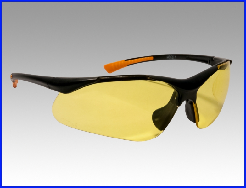 Laadukaat ja tyylikkäät CE-hyväsytyt suojalasit keltaisilla linssillä. Aisoissa ja nenätyynyissä on pehmennys.
