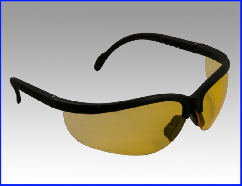 Laadukaat CE-hyväsytyt suojalasit keltaisilla vääristämättömillä linssillä. Säädettävät sangat.