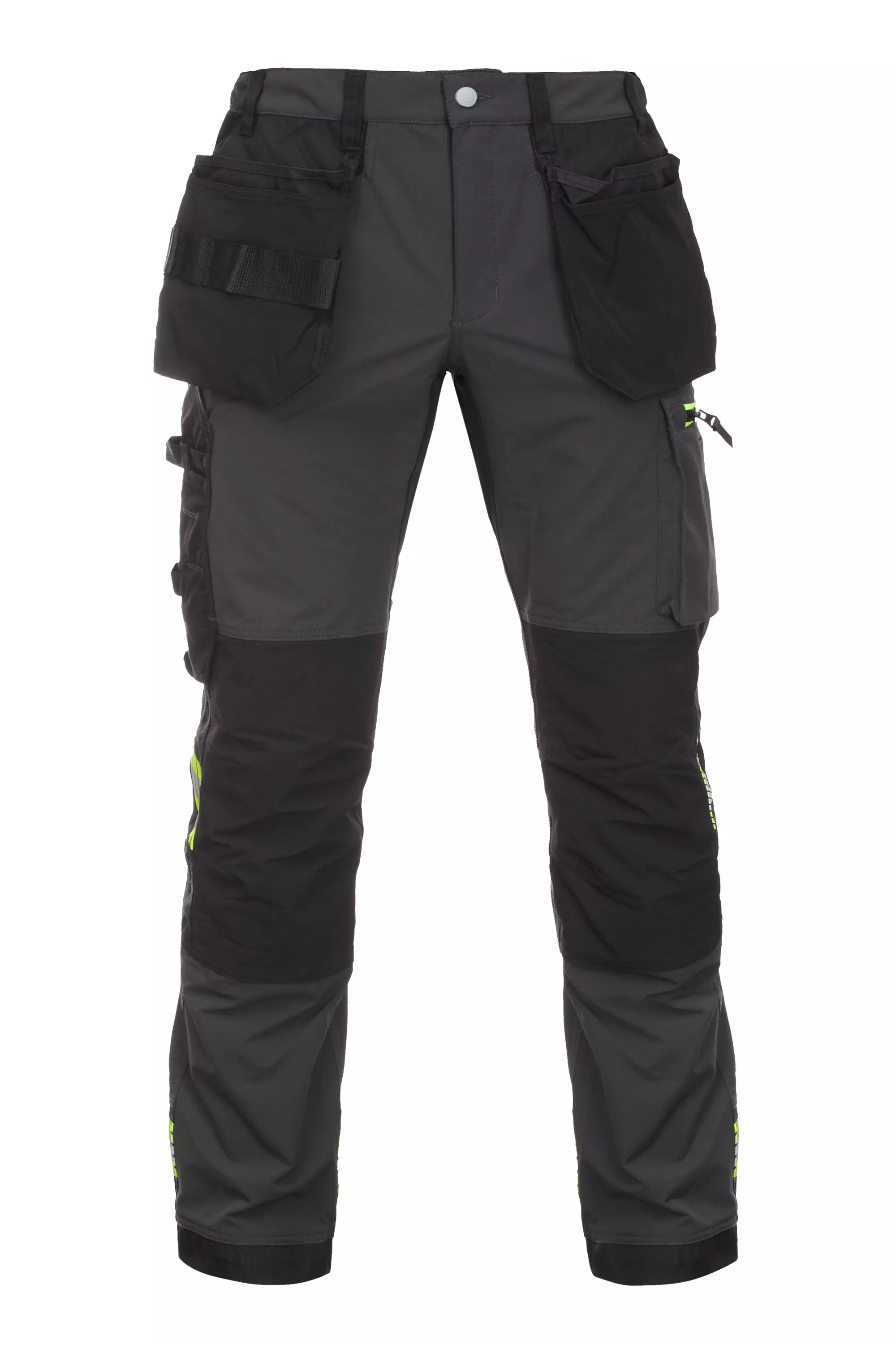 Edessä olevat riipputaskut antavat lisätilaa säilyttää työkaluja. Sivuilla olevat suuret taskut antavat ylimääräistä tilaa, kun taas housujen oikealla puolella olevat nauhat ovat täydellisiä ylimääräisten työkalun pitämiseen, joka muuten voisi rajoittaa liikkumista.