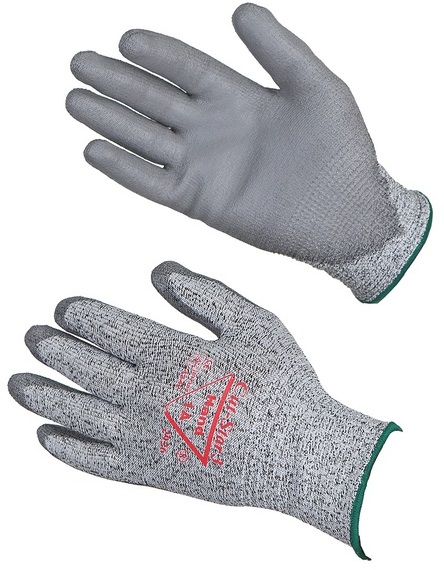 Polyuretaanipinnoitettua HPPE-kuitua. Edullinen viiltosuojakäsine, jolla saa hyvän sormituntuman.