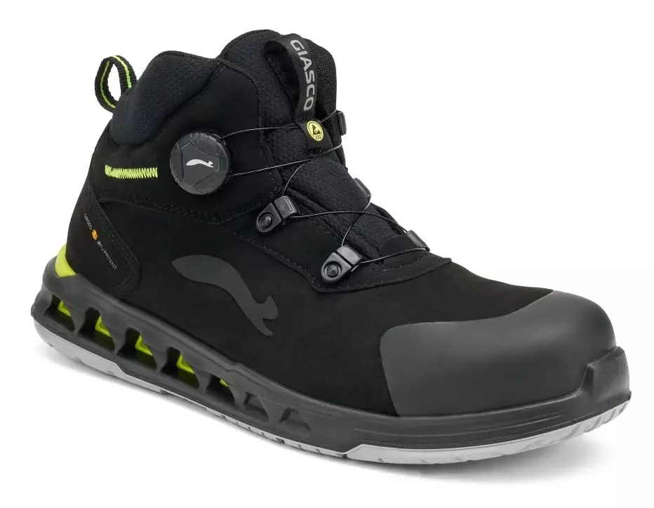 Cosmo on varrellinen, erittäin kevyt ja joustava turvakenkä, joka palauttaa tehokkaasti energiaa askellukseen. Kengässä on innovatiivinen pohjaratkaisu, jossa pohjan lävistävät tunnelit mahdollistavat maksimaalisen iskunvaimennuksen. Valmistettu kestävästä, vettä hylkivästä MICROtech teknisestä kankaasta. Click open rullakiinnitysmekanismi kengän sivulla on helppo käyttää, eikä paina jalkapöytää. Varvassuoja ja naulaanastumissuoja komposiittia. Turvaluokitus S3L Turvakengät.