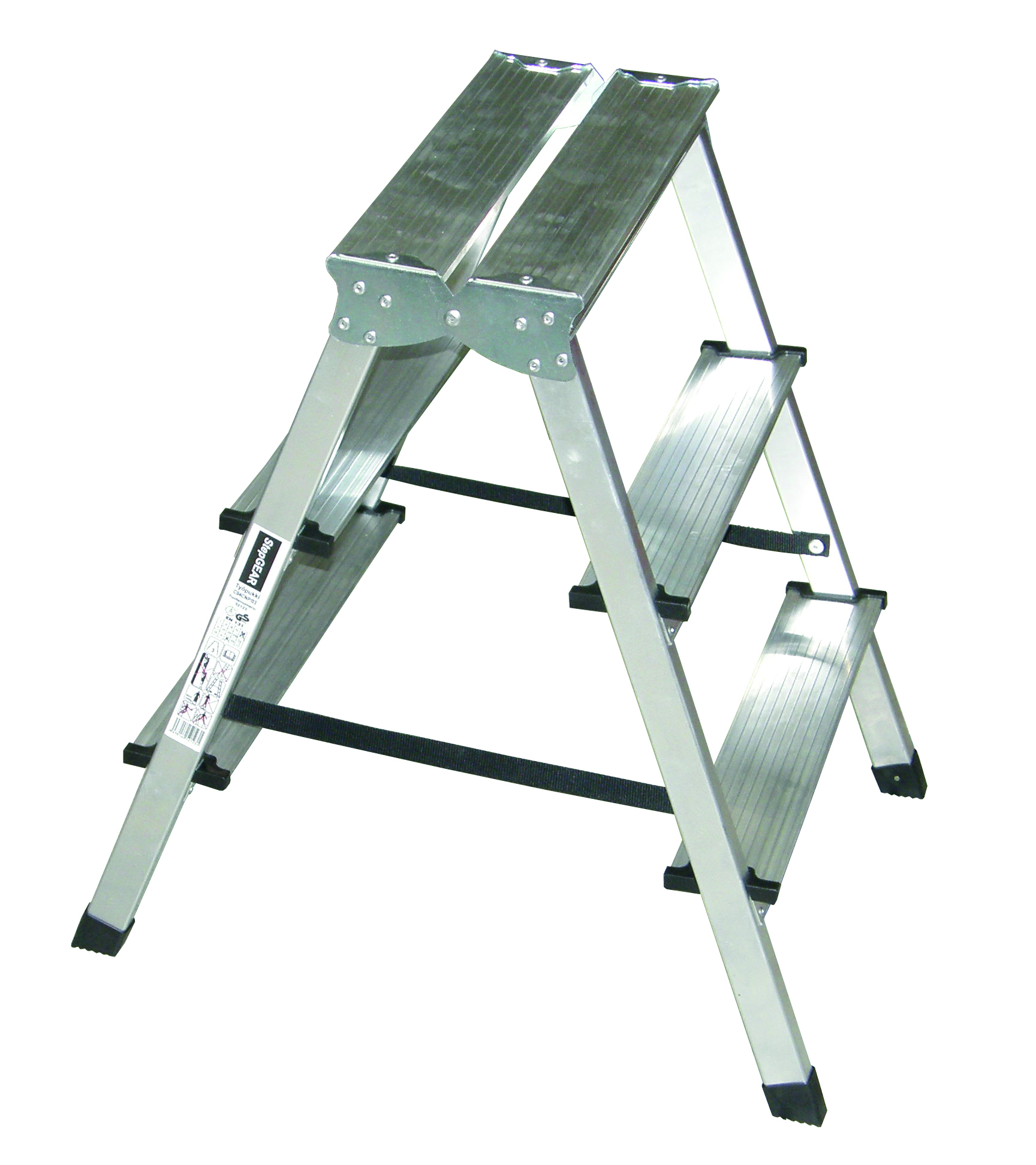 Harjun 3-askelmainen alumiininen työmaapukki täyttää standardin EN 131 vaatimukset ja on turvallinen käyttää.