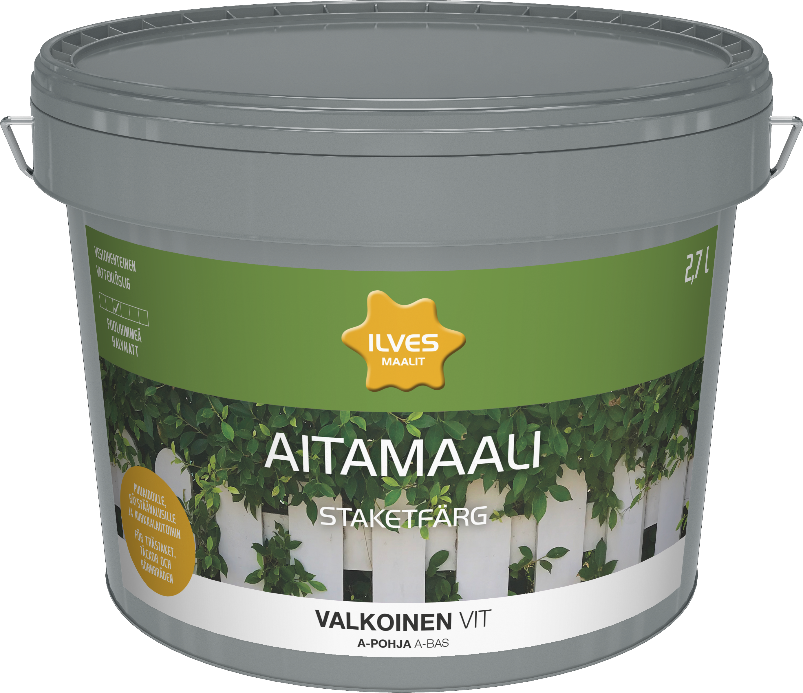 Vesiohenteinen puolihimmeä pintamaali puuaidoille, räystäänalusille ja nurkkalautoihin.