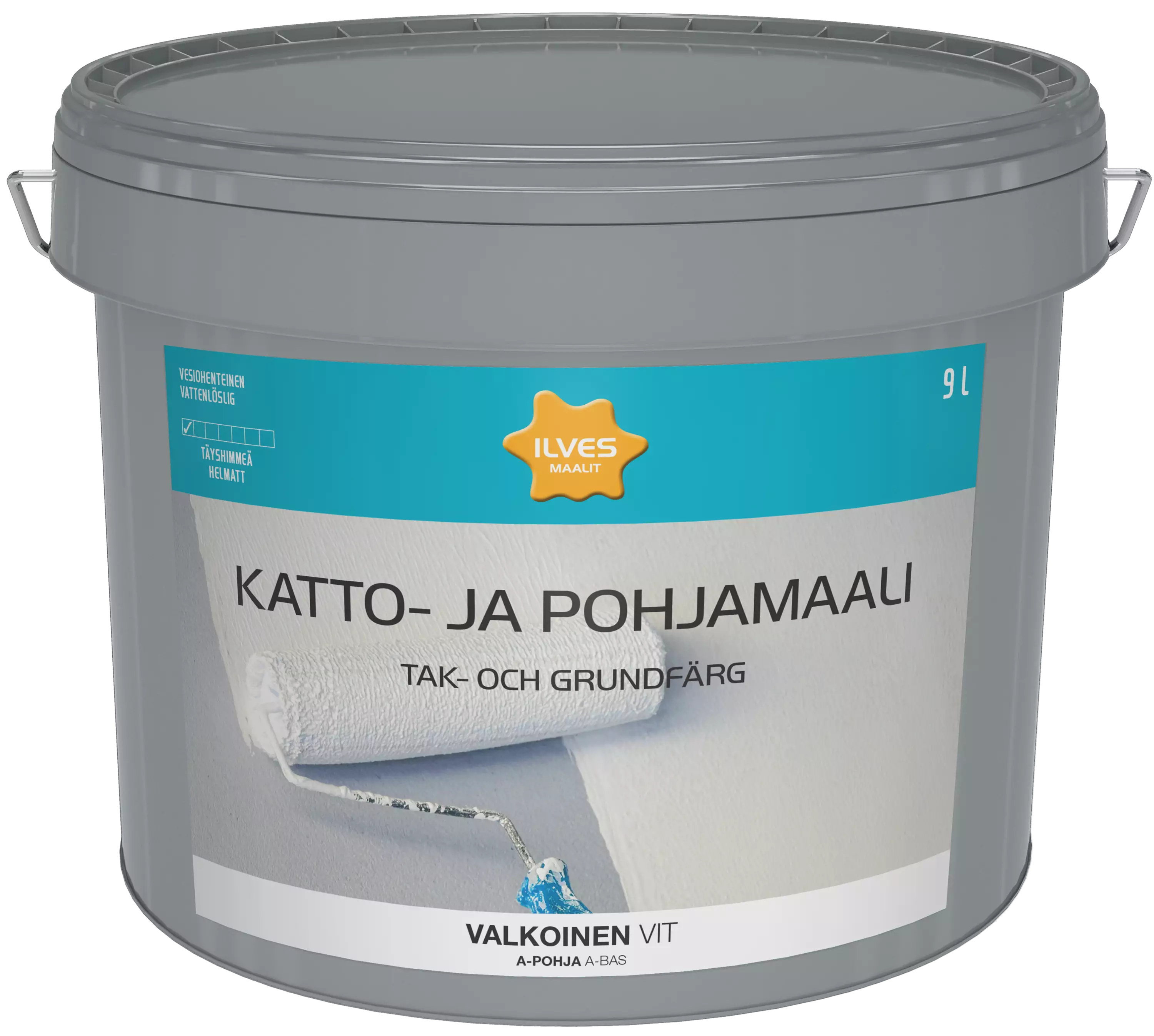 Täyshimmeä vesiohenteinen katto- ja pohjamaali sisäkatto- ja seinäpinnoille. Katoissa voidaan käyttää sekä pohja- että pintamaalina. Seinissä suosittelemme käytettäväksi ainoastaan pohjamaalina. Soveltuu mm. betoni-, rappaus-, tiili- ja tasoitepinnoille, lastu-, kipsi- ja puukuitulevypinnoille sekä uudis- ja korjausmaalaukseen. Kulutukselle alttiille ja pesua vaativille sisäpinnoille suosittelemme Ilves Seinämaalia tai Ilves Remonttimaalia. Ei sovellu suoraan lakatun paneelipinnan päälle. Lakka on hiottava tai lakatut paneelit on maalattava ensin Ilves Oksalakalla, Ilves Stopparilla tai Ilves Tartuntapohjalla.