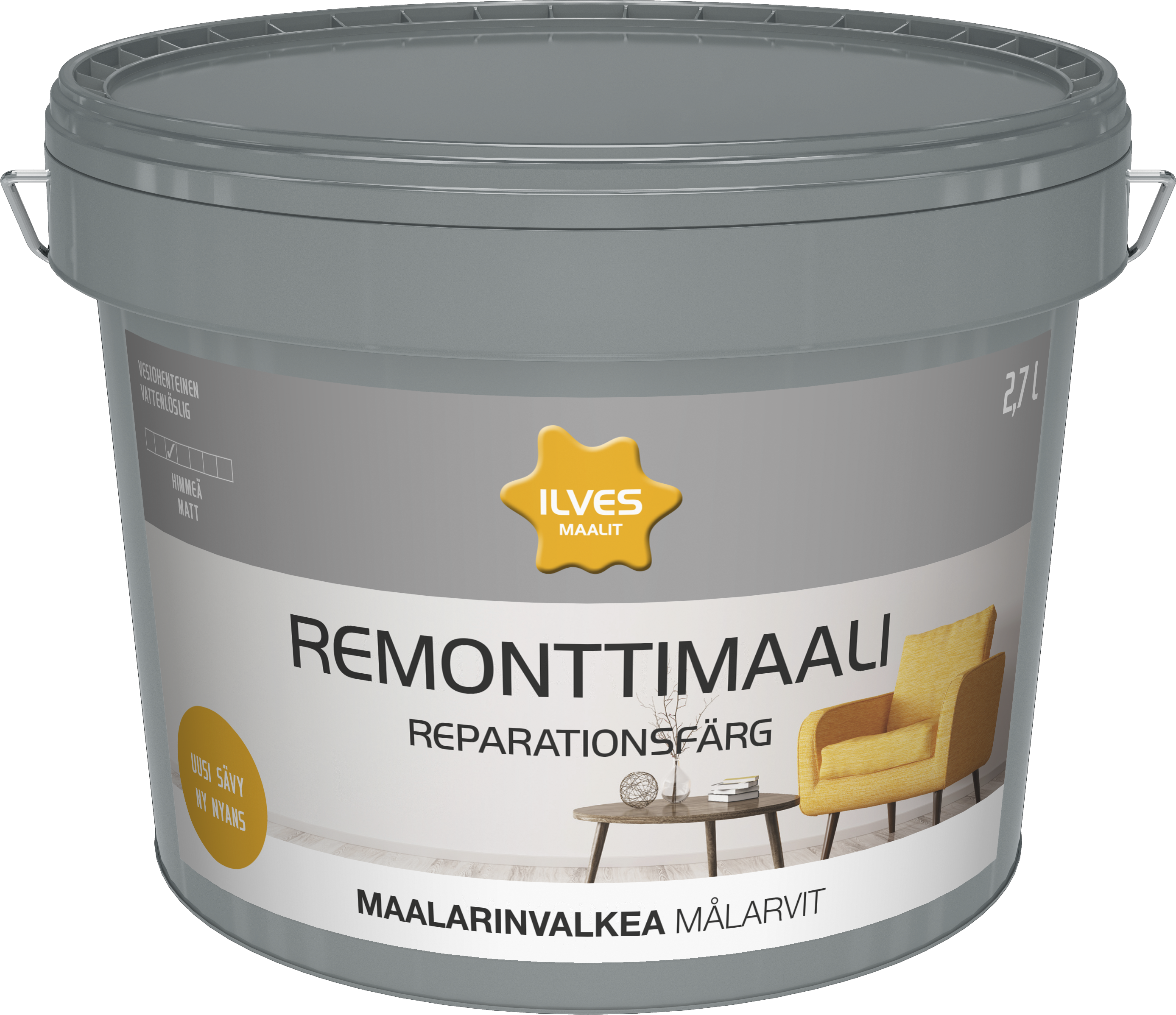 KÄYTTÖOHJE: Puhdista aiemmin maalatut pinnat esimerkiksi Ilves Maalarinpesulla ja huuhtele hyvin vedellä. Puhdista uudet pinnat pölystä. Käytä tarvittaessa tasoitetta. Pohjamaalaa teräspinnat Ilves Ruosteenestomaalilla. Pohjamaalaa aiemmin maalaamattomat ja huokoiset, maalia runsaammin imevät pinnat. Hio aiemmin alkydimaalilla maalatut kovat ja kiiltävät pinnat karheiksi ja poista hiontapöly ennen maalausta. Sekoita maali hyvin ennen käyttöä.