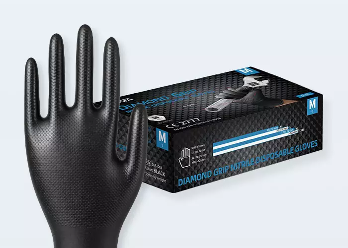 KINGFA Industrial Diamond Textured Gloves -nitriilikäsineet tarjoavat luotettavan pitolujuuden ja mukavan istuvuuden. Sopivat täydellisesti autojen huoltoon, huoltotöihin, rakentamiseen, kipsilevyn asennukseen, maalaukseen ja moniin muihin teollisiin käyttötarkoituksiin, tarjoten vankan kestävyyden ja paremman suojan. Käsineiden timanttirakenne tarjoaa hyvän otteen, joka minimoi liukumisen.