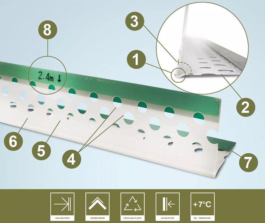 Konkret kulmasuoja on suunniteltu kipsipäällysteisiin ulkokulmiin ja se vahvistaa kipsikulma kestävyyttä sekä voimakkaita iskuja vastaa.