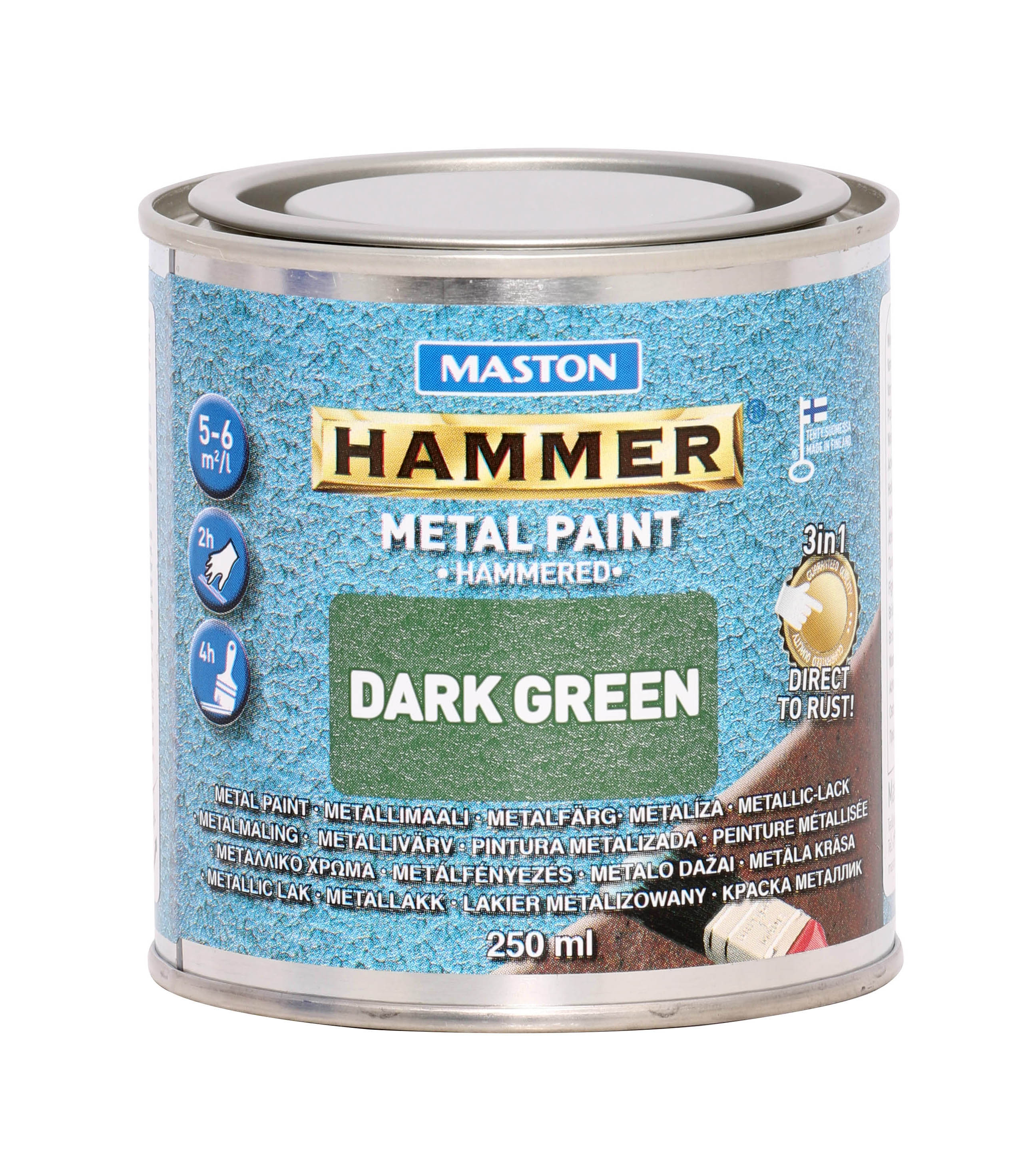HAMMER muodostaa lujan, kiiltävän pinnan kaikille metallipinnoille. Soveltuu sisä- ja ulkokäyttöön. Voidaan levittää suoraan käsiteltäville pinnoille, myös ruosteisille pinnoille. Ilmaa ja kosteutta läpäisemätön maalikerros pysäyttää korroosion ja suojaa metallipintaa tehokkaasti. Soveltuu myös puupintojen käsittelyyn.