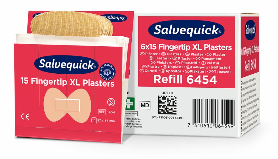 Salvequick sormenpäälaastari on reilun kokoinen, joustava kangaslaastari sormihaavoihin. Allergiatestattu. Helppo asettaa paikalleen, miellyttävä käytössä. Puhdista haava, varmista, ettei se ole tulehtunut, ja vaihda laastari päivittäin.