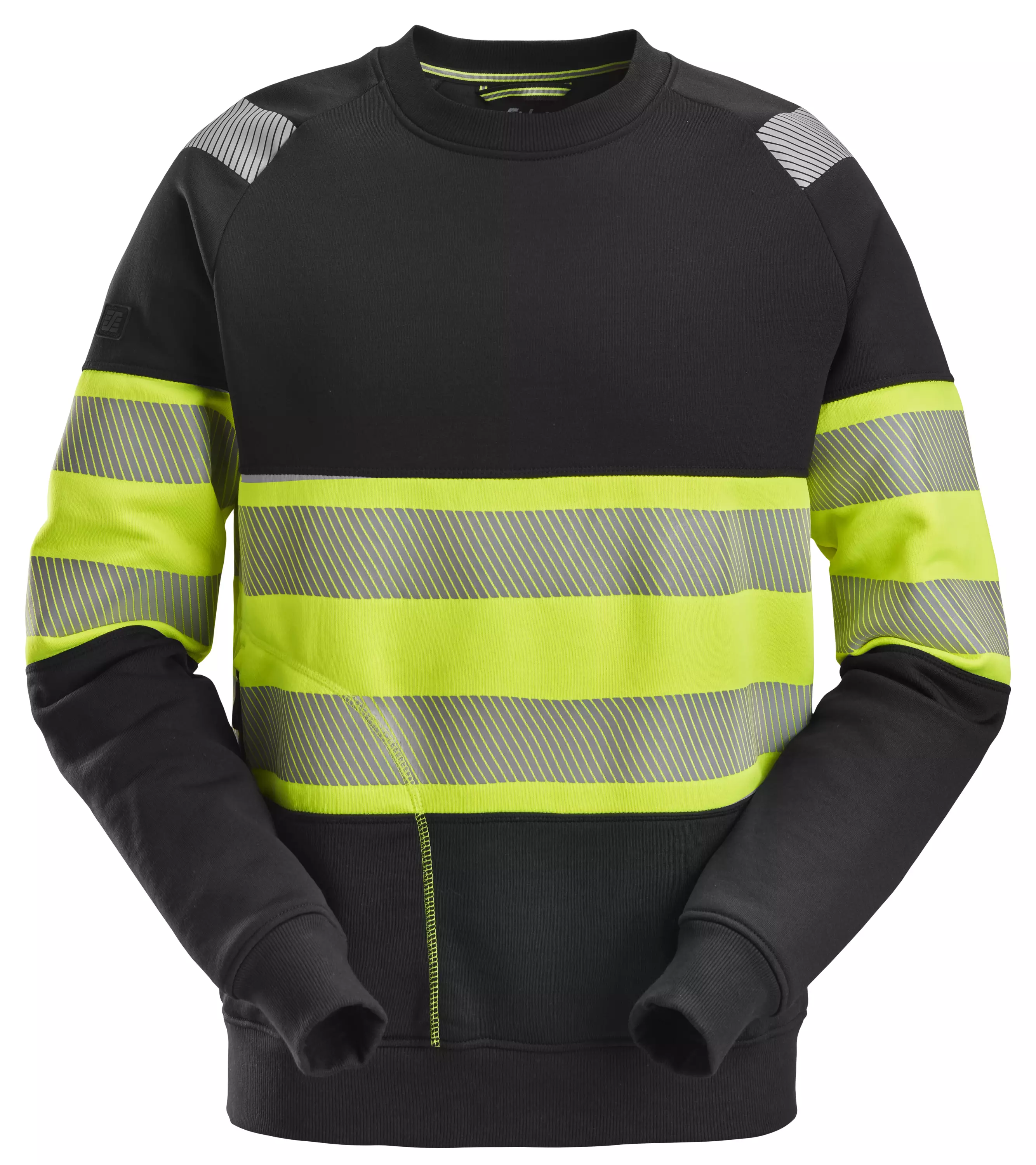 High-Vis, luokka 1, collegepaita. Pehmeä collegepaita, joka on suunniteltu yleisiin rakennustöihin työmailla, joilla on hyvä näkyvyys. Harjattu sisäpuoli tarjoaa lisämukavuutta. Polyesteri-puuvillakangas, jossa harjattu sisäpuoli. Hyvä näkyvyys, sertifiointi EN 20471, luokka 1. Vetoketjullinen tasku heijastavilla yksityiskohdilla. Joustinneulepääntie, -hihansuut ja -helma. Polyesteri (85 %), puuvilla (15 %), 325 g/m².