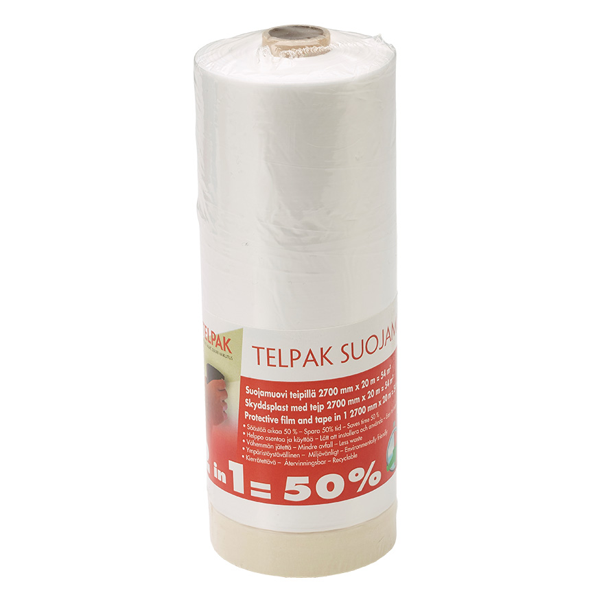 Sähköstaattinen suojamuovi ja hyvä maalarinteippi yhdessä. Soveltuu lähes kaikille maalityypeille. Helppo ja edullinen ratkaisu pienten ja suurten pintojen suojaamiseen. Rajaa tarkasti, ei... Lue lisää