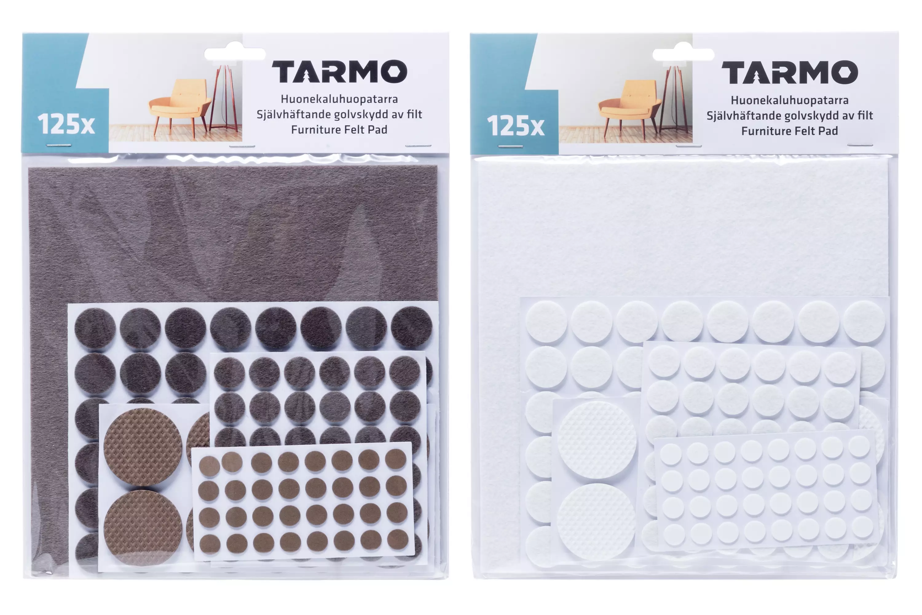 Pehmeä, suojaava, ääntä vaimentava. Huopatarrat huonekalujen jalkojen alle suojaamaan lattioita naarmuuntumiselta.