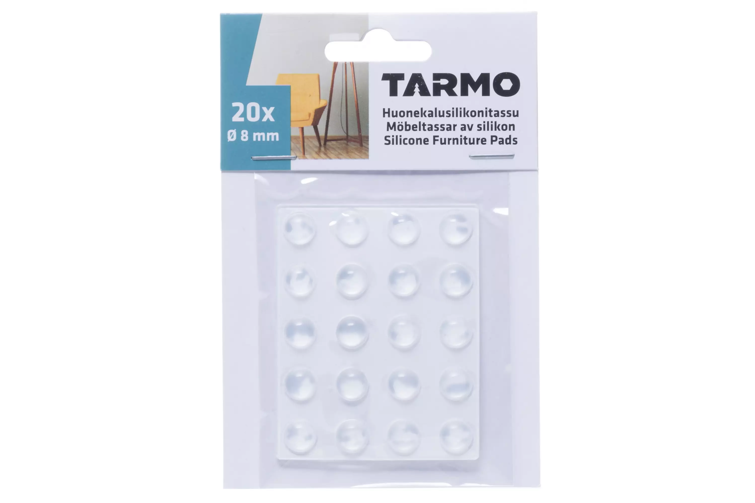 Silikonitassu on huomaamaton ja vähentää esim. kaapinovien kolinaa. Voidaan käyttää myös huopatarrojen tavoin vähentämään lattioiden naarmuuntumista. Halkaisija 0,8 cm. Liimapinta.