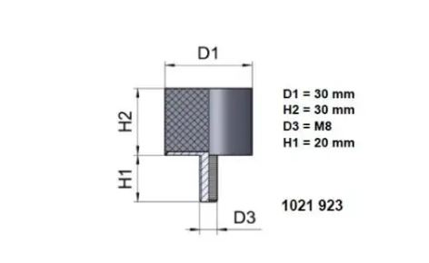 Lieriöpuskin sinkityllä metalliosalla. Lieriömäinen kumipuskin on valmistettu kumimateriaalista. Puskimet soveltuvat koneiden ja laitteistojen törmäysiskujen vaimentamiseen, liukuesteiksi sekä laitteistojen tassuiksi värinän ja äänen vaimennukseen.