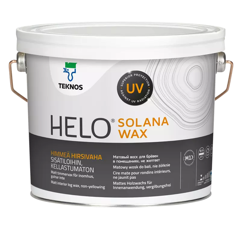 HELO SOLANA WAX on puupinnoille tarkoitettu vesiohenteinen suoja-aine, joka suojaa puuta tehokkaasti UV-säteilyn aiheuttamalta värinmuutokselta. HELO SOLANA WAX muodostaa luonnollisen näköisen, likaa ja vettä hylkivän pinnan. Tuote suojaa puuta tavanomaiselta kellastumiselta. MaalausRYL 2012:n mukainen maalaustuoteryhmä 711. Kiiltoryhmä 5, himmeä.