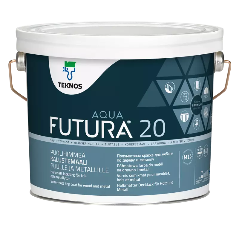 Sisätiloissa FUTURA AQUA 20 soveltuu maalattavaksi pohjamaalatuille ja aiemmin alkydimaaleilla maalatuille puu-, metalli- sekä rakennuslevypinnoille: ovet, ikkunanpuitteet, kaapistot, listat, paneelit ja paneelikatot sekä esim. ilmastointikanavat, porraskaiteet, lämpöpatterit ja putkistot. Ulkona FUTURA AQUA 20 soveltuu pohjamaalattujen ikkunanpuitteiden, ovien ja ulkokalusteiden ym. maalaukseen. Sisätiloissa FUTURA AQUA 20 soveltuu myös FUTURA AQUA PRIMER tartuntapohjamaalilla pohjamaalattujen rappaus- ja tasoitepintojen maalaukseen, esim. ikkunapenkit ja -pielet sekä erityiskohteiden, kuten porraskäytävien, seinäpinnat. Tuote täyttää lelujen turvallisuusstandardin EN 71-3:2013 + A3:2018 vaatimukset alkuaineiden siirtymisen raja-arvoista.