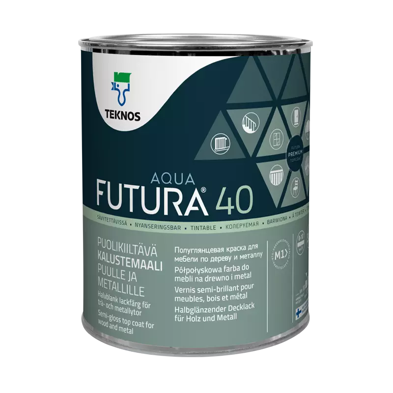 Sisätiloissa FUTURA AQUA 40 soveltuu maalattavaksi pohjamaalatuille ja aiemmin alkydimaaleilla maalatuille puu-, metalli- sekä rakennuslevypinnoille: ovet, ikkunanpuitteet, kaapistot, listat, paneelit ja paneelikatot sekä esim. ilmastointikanavat, porraskaiteet, lämpöpatterit ja putkistot. Ulkona FUTURA AQUA 40 soveltuu pohjamaalattujen ikkunanpuitteiden, ovien ja ulkokalusteiden ym. maalaukseen. Sisätiloissa FUTURA AQUA 40 soveltuu myös FUTURA AQUA PRIMER tartuntapohjamaalilla pohjamaalattujen rappaus- ja tasoitepintojen maalaukseen, esim. ikkunapenkit ja -pielet sekä erityiskohteiden, kuten porraskäytävien, seinäpinnat. Tuote täyttää lelujen turvallisuusstandardin EN 71-3:2013 + A3:2018 vaatimukset alkuaineiden siirtymisen raja-arvoista.