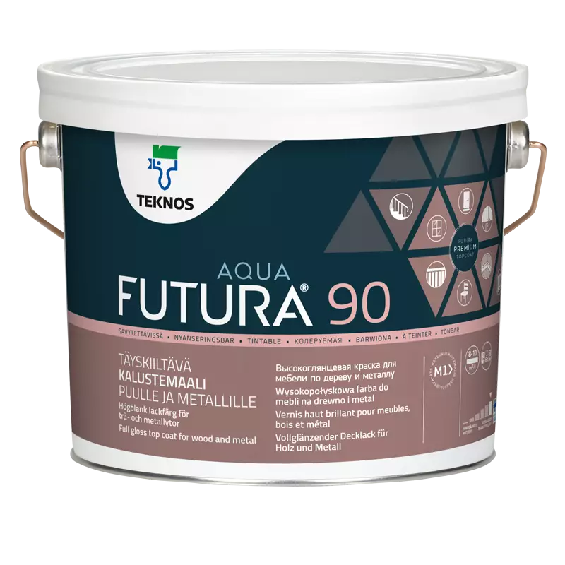 Sisätiloissa FUTURA AQUA 90 soveltuu maalattavaksi pohjamaalatuille ja aiemmin alkydimaaleilla maalatuille puu-, metalli- sekä rakennuslevypinnoille: ovet, ikkunanpuitteet, kaapistot, listat, paneelit ja paneelikatot sekä esim. ilmastointikanavat, porraskaiteet, lämpöpatterit ja putkistot. Ulkona FUTURA AQUA 90 soveltuu pohjamaalattujen ikkunanpuitteiden, ovien ja ulkokalusteiden ym. maalaukseen. Sisätiloissa FUTURA AQUA 90 soveltuu myös FUTURA AQUA PRIMER tartuntapohjamaalilla pohjamaalattujen rappaus- ja tasoitepintojen maalaukseen, esim. ikkunapenkit ja -pielet sekä erityiskohteiden, kuten porraskäytävien, seinäpinnat. Tuote täyttää lelujen turvallisuusstandardin EN 71-3:2019 vaatimukset alkuaineiden siirtymisen raja-arvoista.