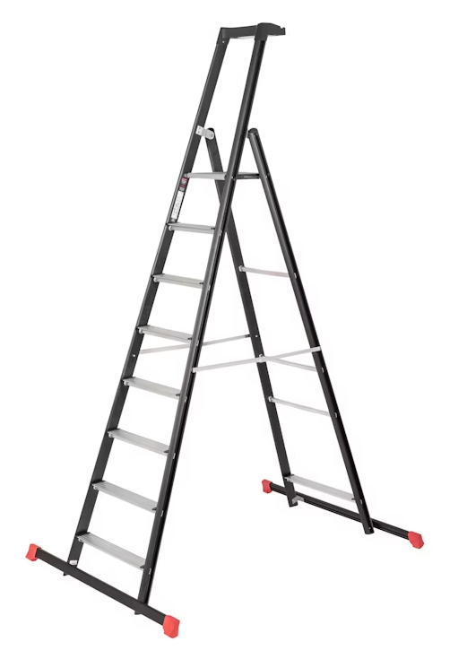 Kestävä, kotimainen ammattikäyttäjän A-tikas. Sivuprofiileiden ergonominen muotoilu yhdessä mustan struktuurimaalipinnan kanssa tekee tikkaan miellyttäväksi käyttää - ei sotke käsiä. Turvallisuutta lisäävät korkea polvituki, luja askelmakiinnitystekniikka, kestävä tarvikekotelo ja metallirajoittimet.