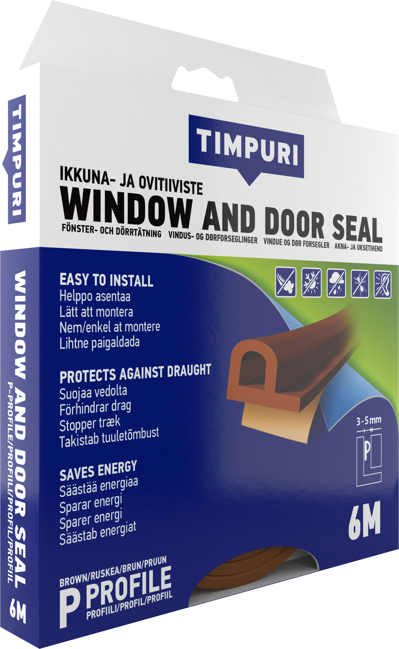 Timpuri Ikkuna-ja ovitiiviste P 6m ruskea - Ikkuna- ja ovitiivisteet - 0008796 - 1
