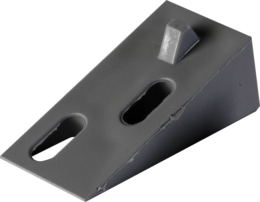 Kiilapala 1:2,5 vesikourun koukkuun. Kiilalla säädetään kourukoukun kulmaa rakennuksen kattokulmaan sopivammaksi (sadevesijärjestelmän osa). Muovia.