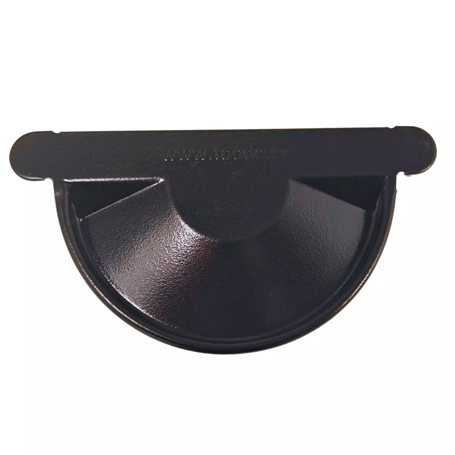Puolipyöreän kourun päätykappale, oikeaan tai vasempaan kourun päätyyn (sadevesijärjestelmän osa). Tiivistetään tarkoitukseen sopivalla ulkotiivistemassalla tai silikonilla kourun sisäpuolelta. Vakiomitta 125 mm. Pinnoitettua terästä.