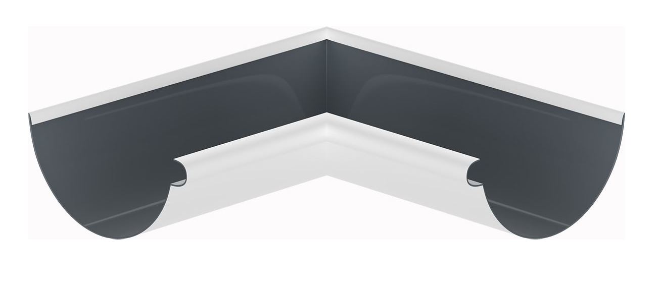 Puolipyöreään vesikouruun sopiva kulmakappale 90 astetta (sadevesijärjestelmän osa, oma tuote sekä sisä- että ulkokulmiin). Sopii kouruihin jotka asennetaan samaan tasoon tipparäystäälle, esim. aumakattoiset rakennukset ja sisäjiirin alapäästä molempiin suuntiin lähtevien kourujen kulmaan. Vakiomitta 125 mm kouruun sopiva. Kulmakappale yhdistetään liitoskappaleella kummastakin päästään vesikouruun.