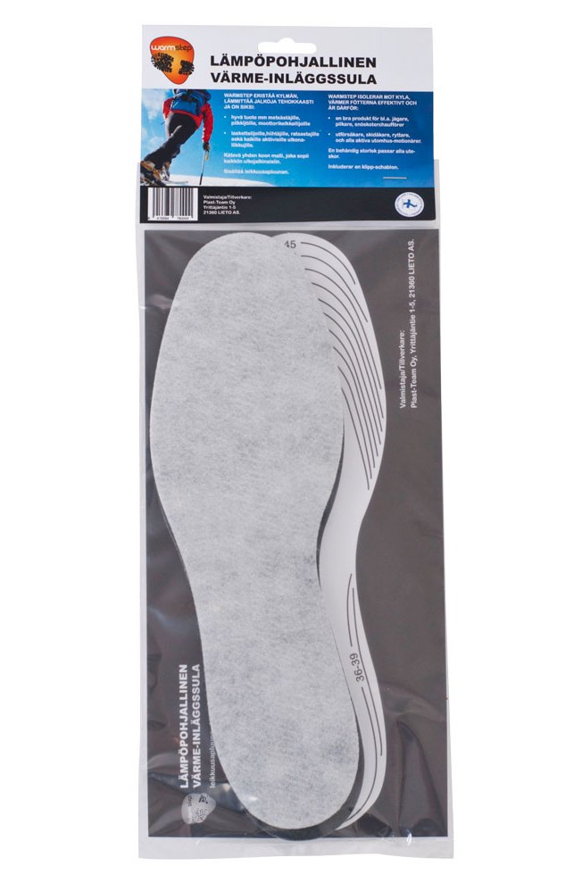 Warmstep pohjalliset eristää kylmän, lämmittää jalkoja tehokkaasti ja on siksi hyvä tuote esim. metsästäjille, pilkkijöille, moottorikelkkailijoille, laskettelijoille,hiihtäjille, ratsastajille sekä kaikille aktiivisille ulkonaliikkujille. Valmistettu lämpöäeristävästä kestävästä ja kovasta solumuovikerroksesta ja siihen laminoidusta huovasta, joka imee kostautta ja pehmentää. Kätevä yhden koon malli, joka sopii kaikkiin ulkojalkineisiin. Sisältää leikkuusapluunan. Helppo puhdistaa vedellä ja miedolla pesuaineella