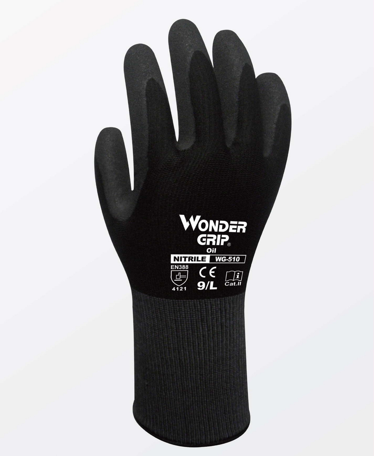 Öljyn kestävä käsine jossa on kaksinkertainen nitriilipinnoite