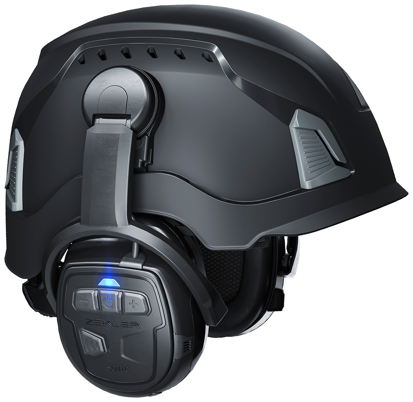 Kypärään kiinnitettävät kuulonsuojaimet ympäristöäänien tasorajoituksella ja Bluetoothilla.