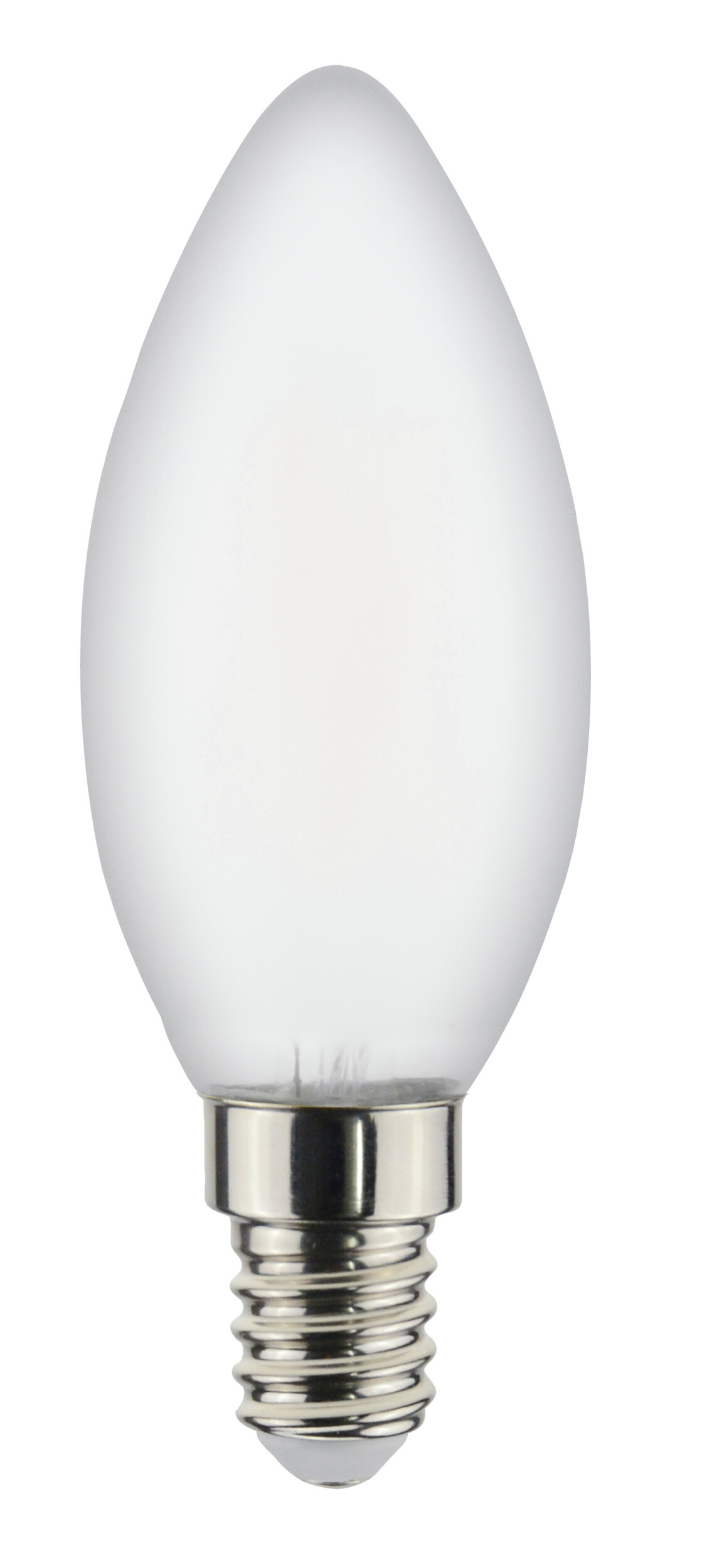 Himmeä kynttiläkupuinen led-lamppu 4,5W - Värilämpötila (K): 2700K - Lampun kanta: E14 - 470lm - Polttoikä 12000h - Koko 35x97mm - 2 kpl pahvipakkaus