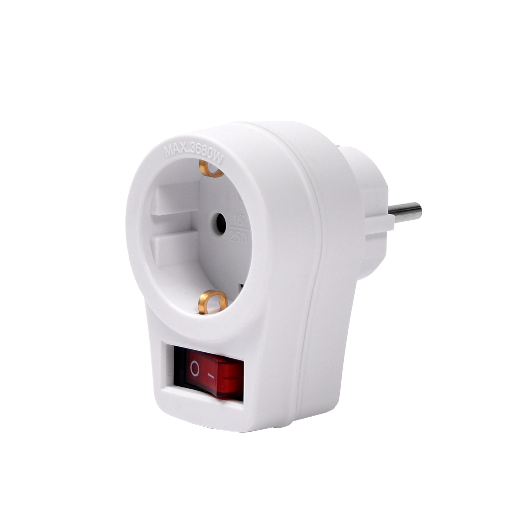 Axxel pistorasia on/off kytkimellä sisäkäyttöön. - on/off -kytkimellä. - Jännite: 230 V / 16A. - Wattiteho: 3680 W. - Suojausluokka: IP20, sisäkäyttöön