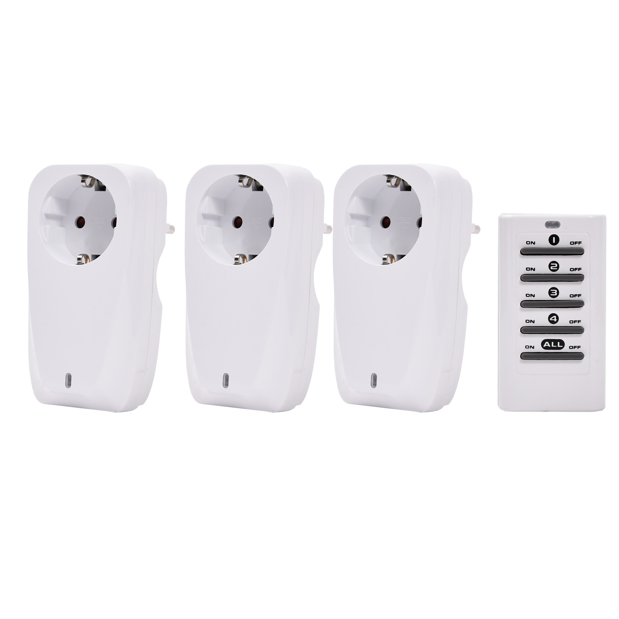 Langaton pistorasia 3+1 kaukosäädöllä sisäkäyttöön.
