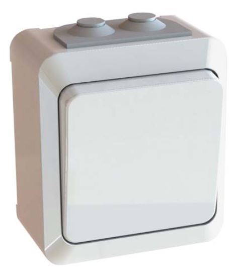 Pinta-asennettava roiskevesitiivis Etman-kytkin 1/6 jousiliittimin. Kytkimessä on 2 lisäliitintä, joita voidaan käyttää johtimien jatkamiseen. Liittimiin voi kytkeä max 2 johdinta ja ne on hyväksytty ML ja MK johtimille.