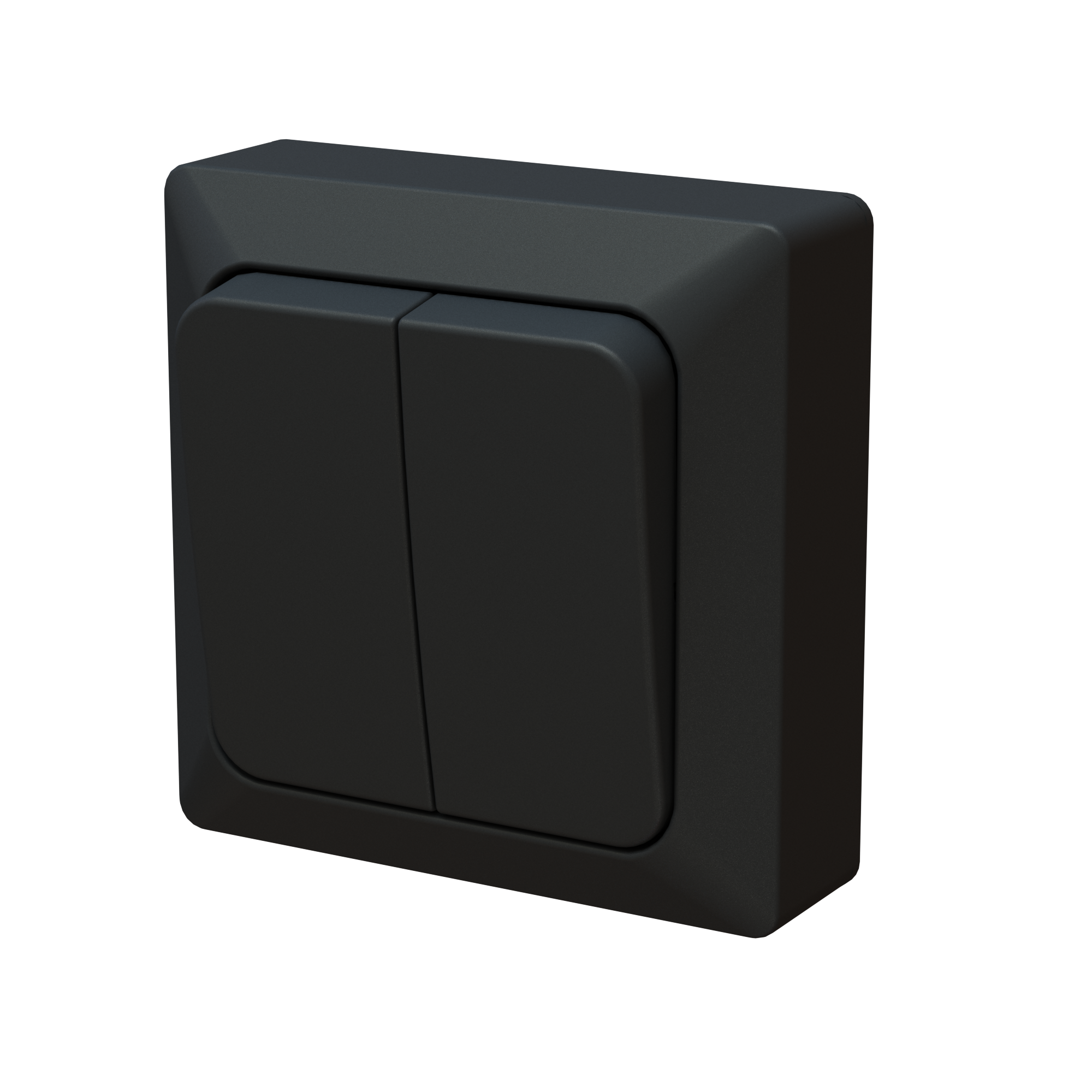 Harju HIILI-sarjan mattamusta pinta-asennettava kruunukytkin kuiviin tiloihin. Kytkentä ruuviliittimin. Kotelointiluokka IP20.