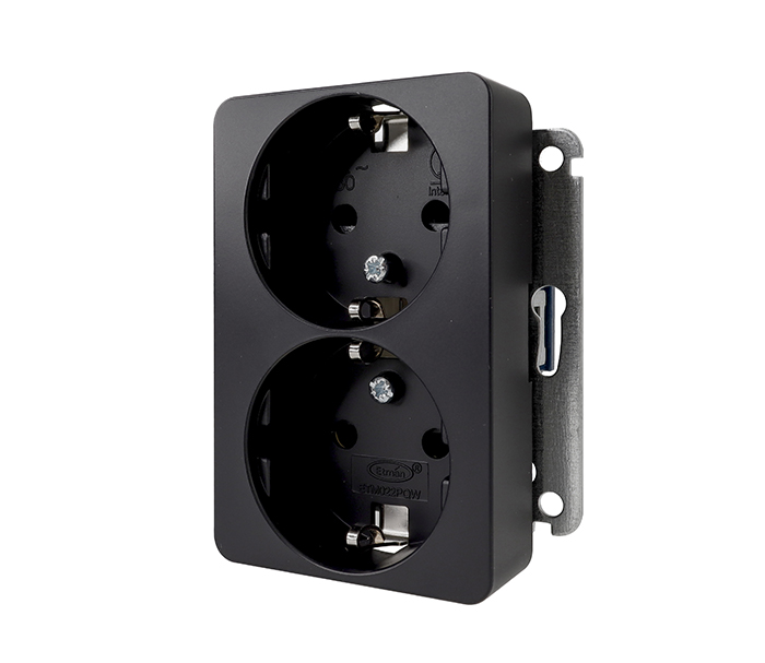 Keskiölevyllinen jousiliittimin varustettu maadoitettu Etman-pistorasia uppoasennukseen. Pistorasiassa on liittimet kutakin kosketinta kohden. Niihin voidaan kytkeä maksimissaan neljä johdinta. Liittimet on hyväksytty ML ja MK johtimille.///