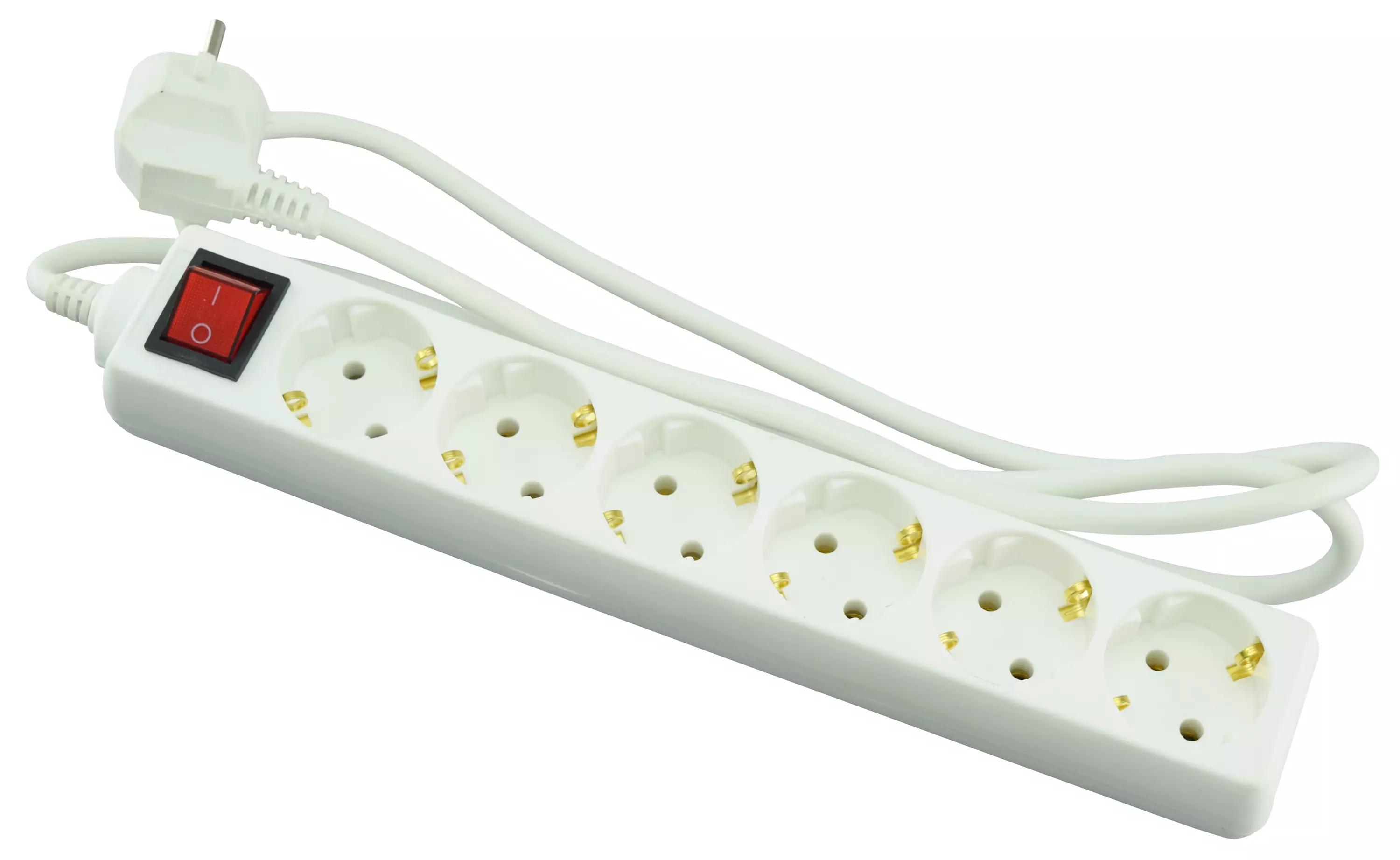 Kytkimellä ja lapsiturvalla varustettu jatkojohto sisäkäyttöön. 6-os. maadoitettu 1,5 m kytkin