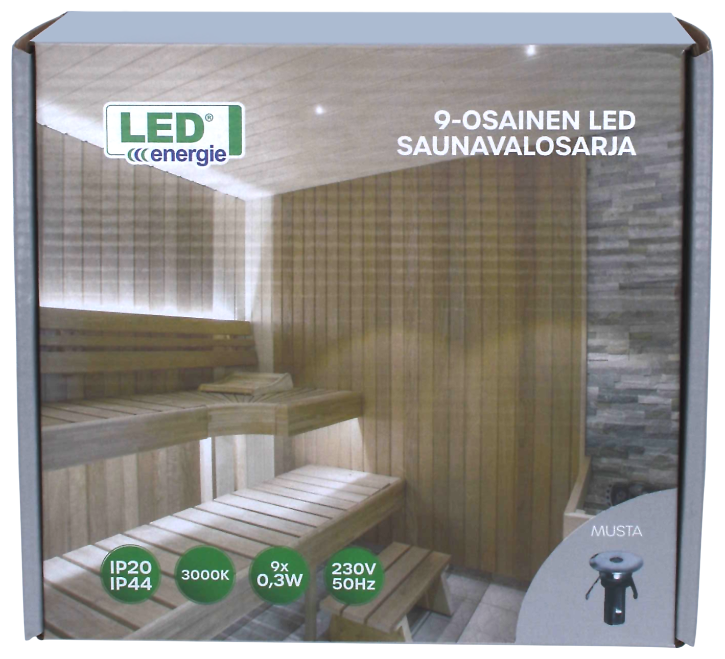 Led Energie LED lisälamppu 5m johdolla saunavalosarjaan, musta, 1kpl (teflon)