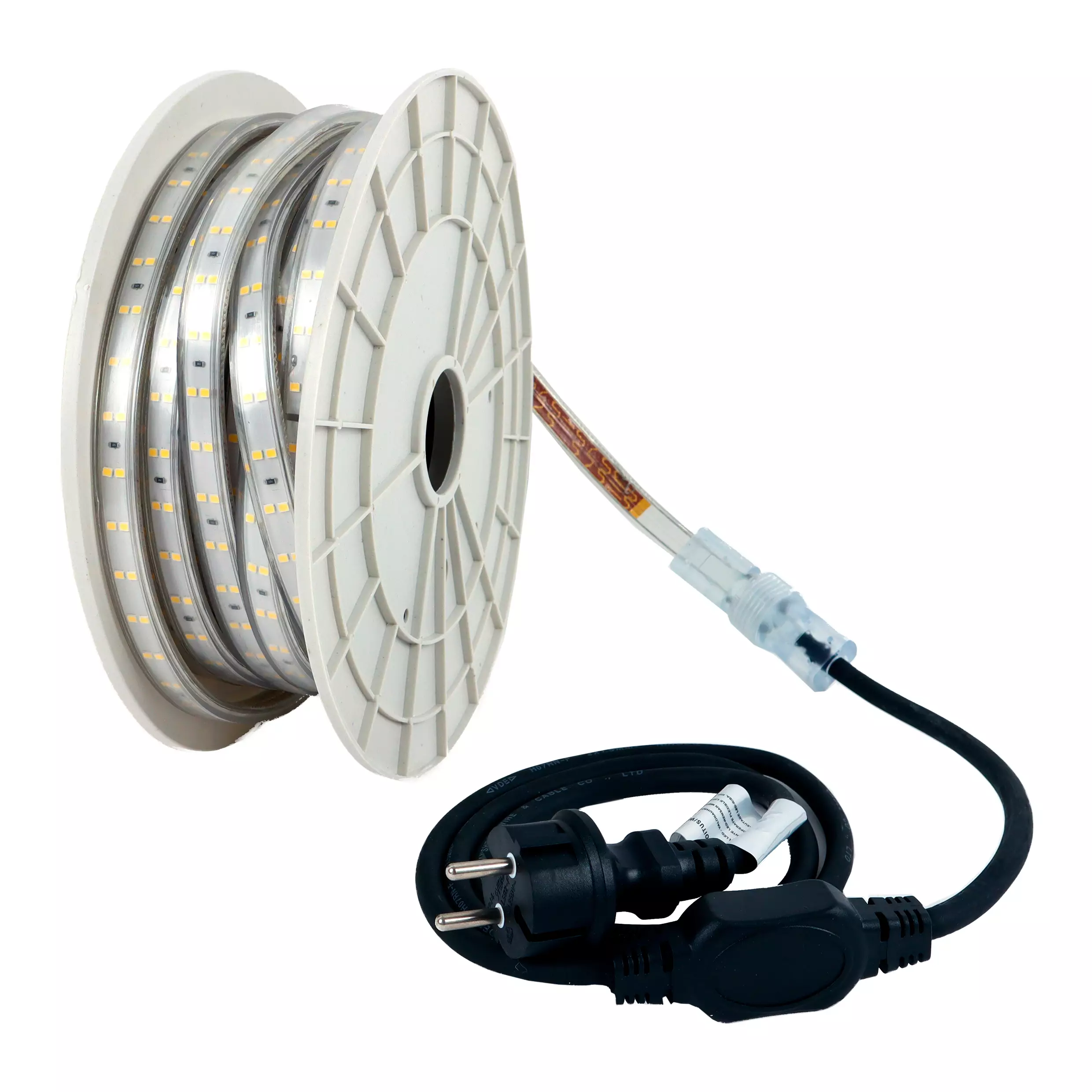 230V taipuisa LED-valonauha on käytännöllisesti sijoitettu kaapelikelaan, mikä tekee sen kuljettamisesta helppoa, esimerkiksi työmailla. Nauha on jatkettavissa jopa 50 metriin saakka. Nauhaa ei voi katkaista, mikä on syytä huomioida käytössä.