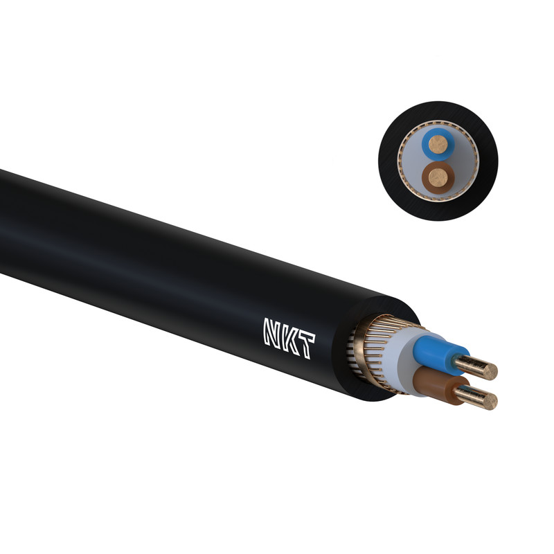 Kaapelissa on 2 kpl 2,5 mm2 kuparijohtimia. Vaipan kuparilankojen muodostama PE/PEN-johdin on 2,5 mm2.