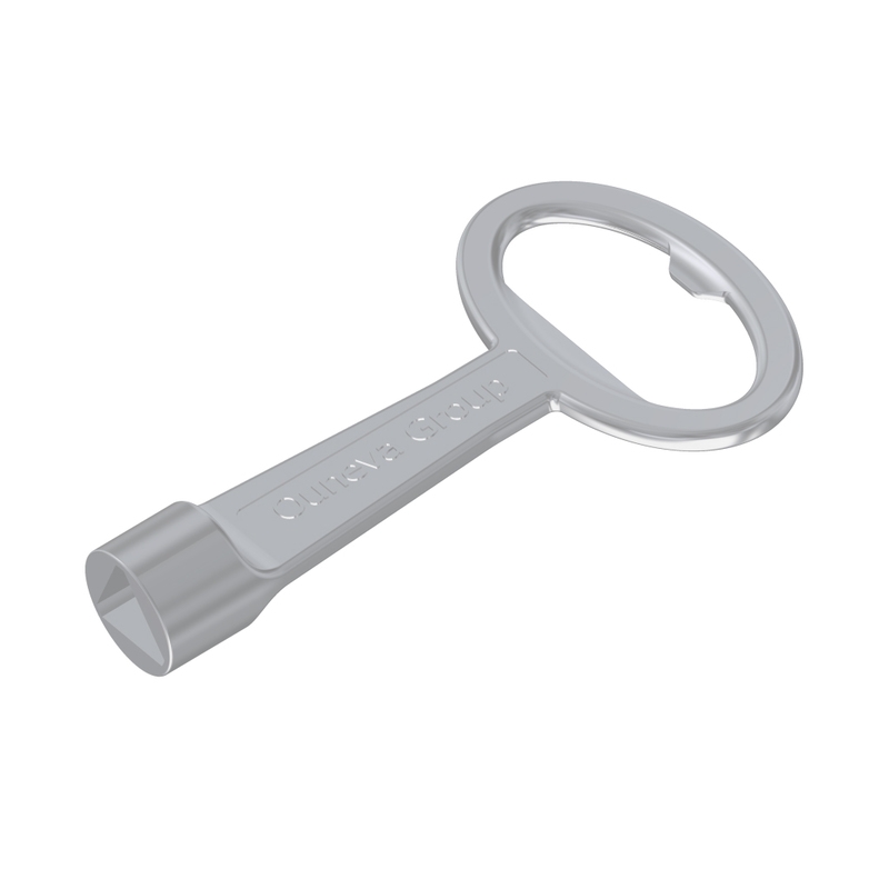 Opalin kolmiosalpa-avain sähkökaapeille. Avain on valmistettu nikkelipinnoitetusta painevaletusta sinkistä. Sähkönumero: CBV468