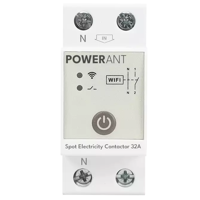 Powerant pörssisähkö kontaktori 32A on yksivaiheinen pörssisähkön ohjauslaite. Se kytkee sähkön automaattisesti päälle kun hinnat ovat edulliset, ja pois päältä, kun sähkö on kallista. Helppo ja nopea asentaa, katso asennusopas tästä.