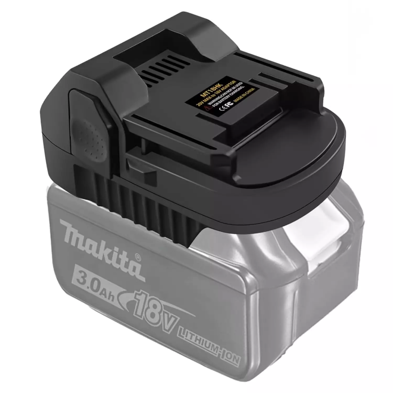 Akkuadapteri, jolla saat Hikoki / Hitachi 18V koneisiin kiinnitettyä Makita 18V akun.