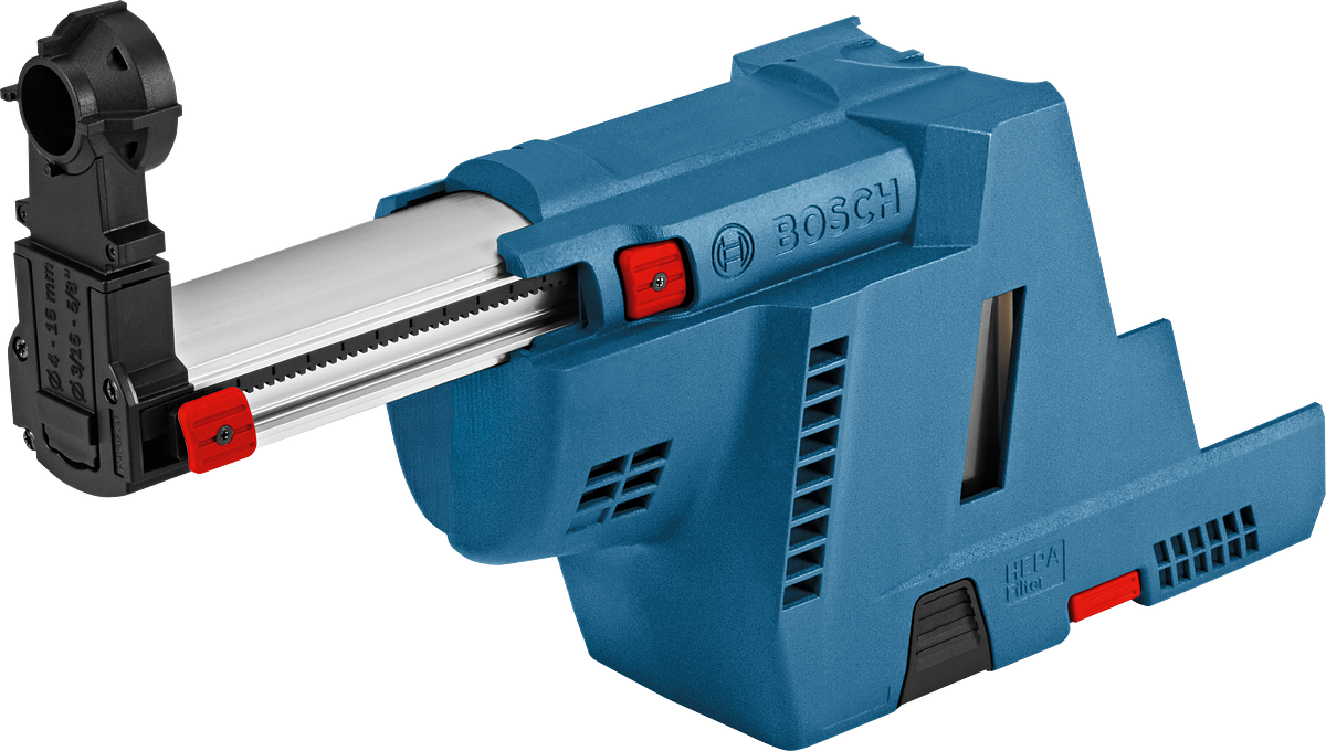 Pölyadapteri GDE 18V-16 Professional poravasaroille. Pölynpoiston optimoiva HEPA-suodatin poistaa 99,97 % yli 0,3 mikrometrin kokoisista pölyhiukkasista. Pölynpoistojärjestelmään sisältyy Auto Power -toiminto, joka käynnistyy automaattisesti porattaessa ja sammuu kaksi sekuntia poran liipaisimen vapauttamisen jälkeen. Sopii GBH 18V-26 ja GBH 18V-26 F poravasaroille.
